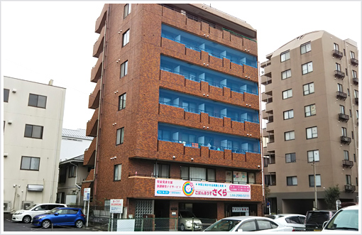 ガスト入間市駅前店から駐車場に沿って150m程歩くと茶色い建物があります。