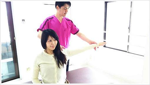 強い力よりも優しい力で関節の動きを確認し制限がある際は早急に施術します。